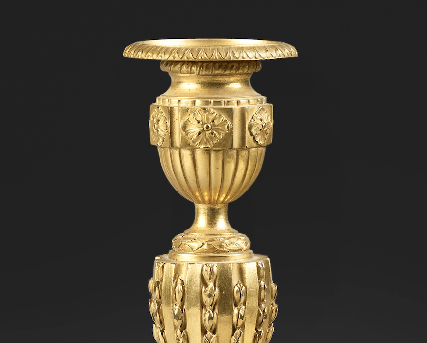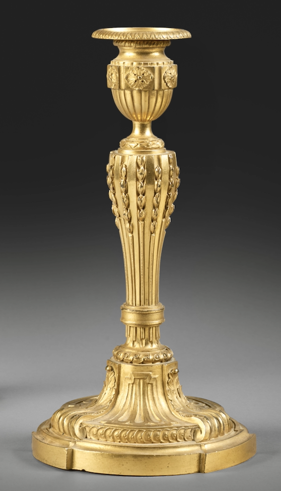 - Paire de flambeaux en bronze doré, époque Louis XVI, seconde moitié du XVIIIe siècle, collection privée